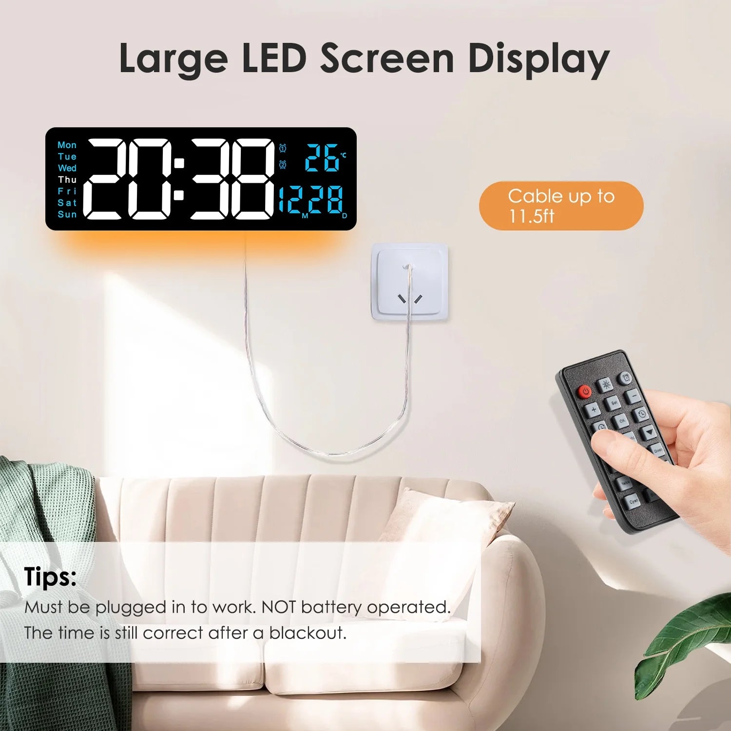 - 【Large 16-Inch LED Display】The led digital wall clock is designed with oversized fonts that are clear from all angles or from a distance. This large digital wall clock is perfect for the elderly.