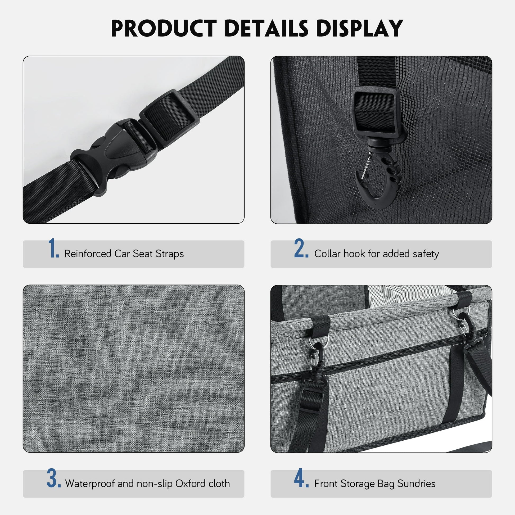 Onekawa Dog Car Seat is a tool that allows you to concentrate on driving and take your pet friend with you on a car trip. With it, your car seat will not be scratched or stained by dog urine. It is made of upgraded polyester and Oxford , which is wear-resistant, moisture-absorbent, soft and skin-friendly, making it an ideal material for pet comfort. The dog car seat has two safety belts to secure the car seat and prevent the pet from sliding into the car. It is the perfect helper for transporting your pet comfortably and safely.