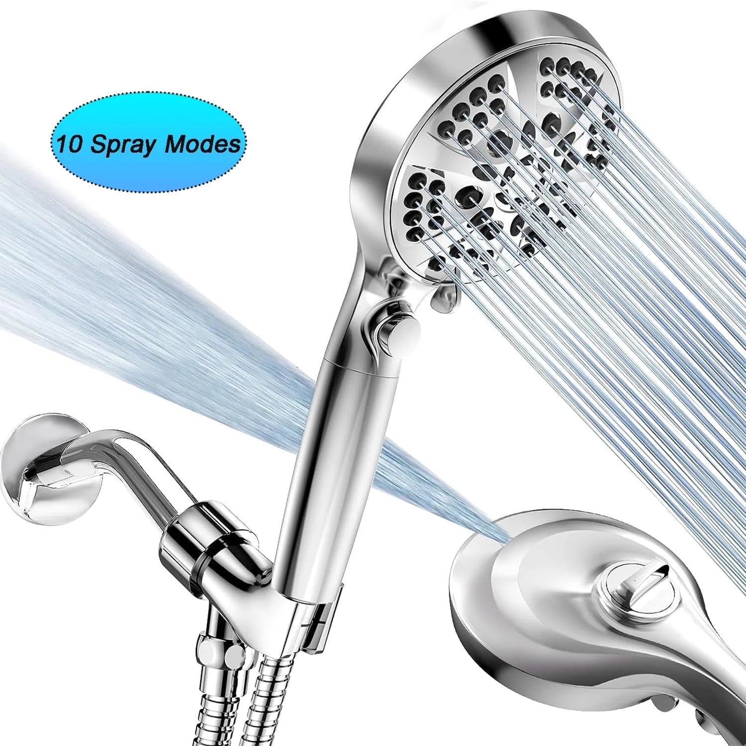 Onekawa Handheld Shower Head, High Pressure Shower Heads with Hose,Filtered Showerhead with Water Stop Button, 10 Spray Modes,Silver