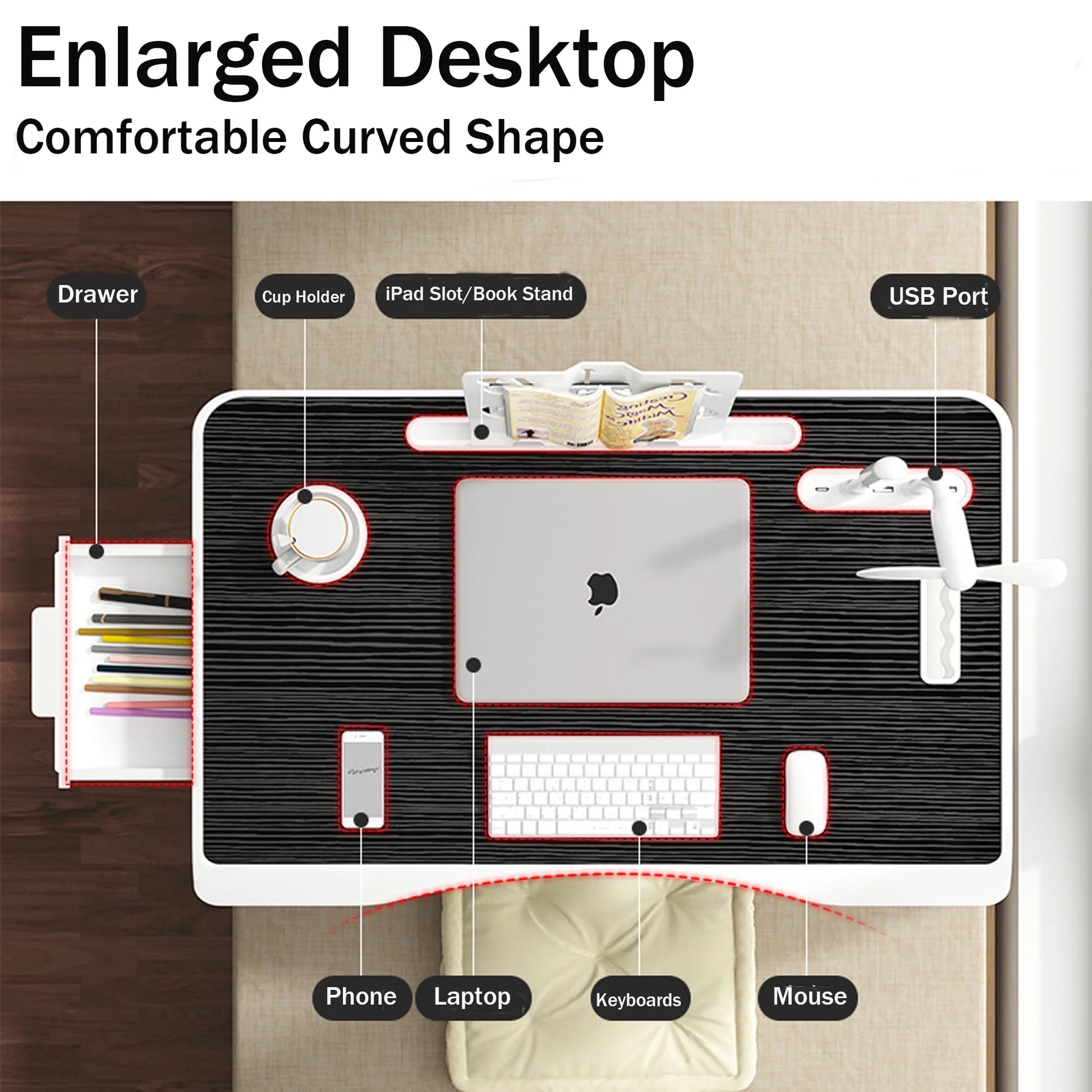Onekawa Laptop Bed Desk Tray Bed Table, 23.6 Inch Foldable Portable Lap Desk Notebook Stand Reading Holder with Storage Drawer and USB Port for Bed/Couch/Sofa/Floor -Black