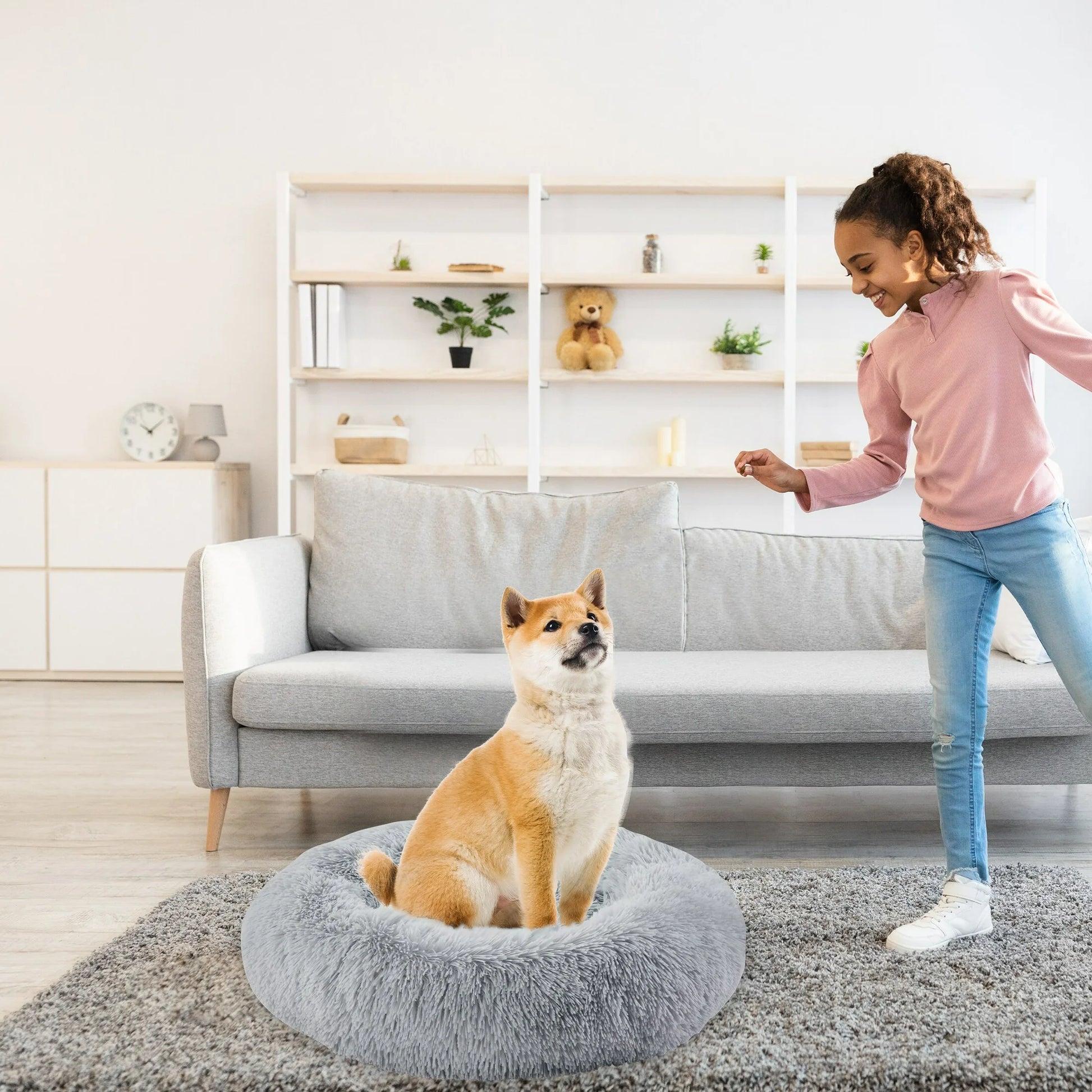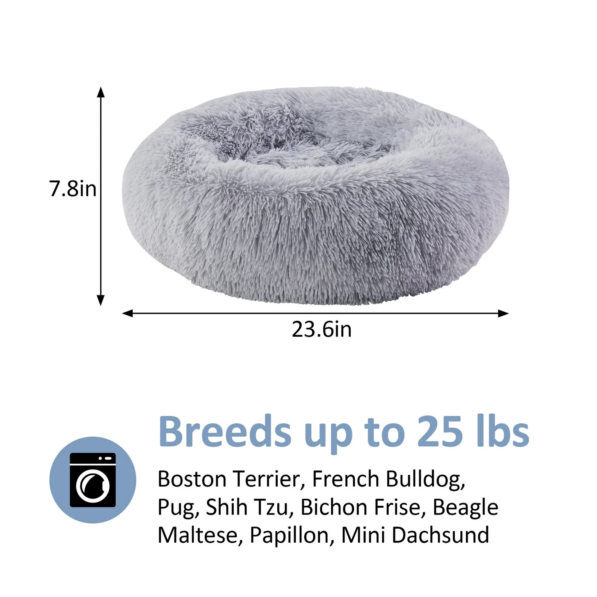 Onekawa Round Dog Bed for Small Dogs, Calming Washable Small Pet Bed, 24" Anti-Slip Soft Fluffy Plush Large Cat Bed for Small & Medium Dog