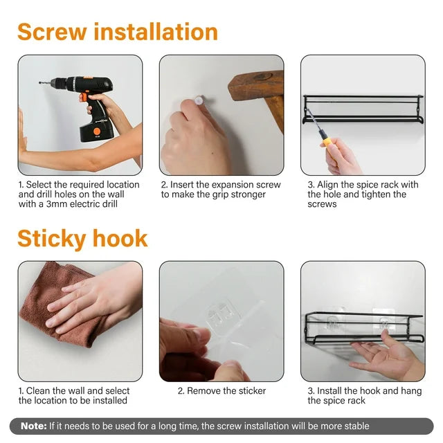 Reliable and strong: This spice rack is made of carbon steel, so it is harder, stronger and rust resistant.