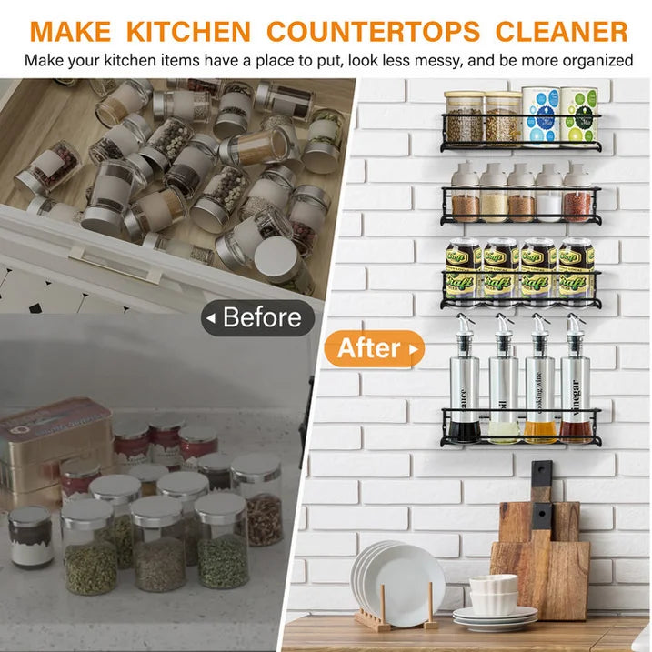 【Save Space & Stay Organized】 The adhesive wall-mounted spice rack frees up counter space and keeps your kitchen tidy.
