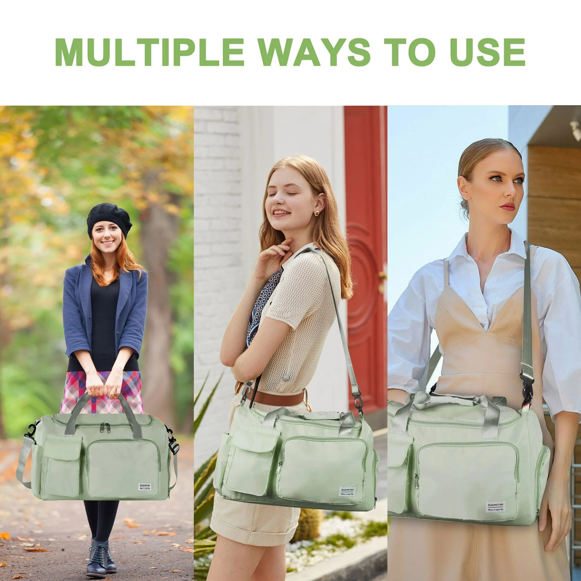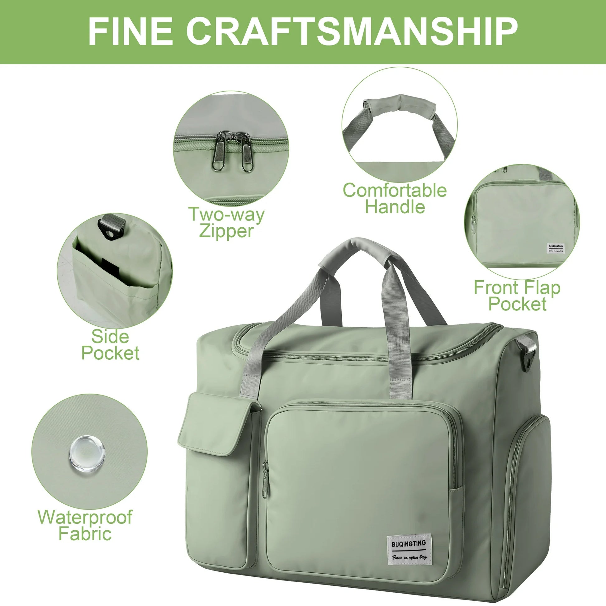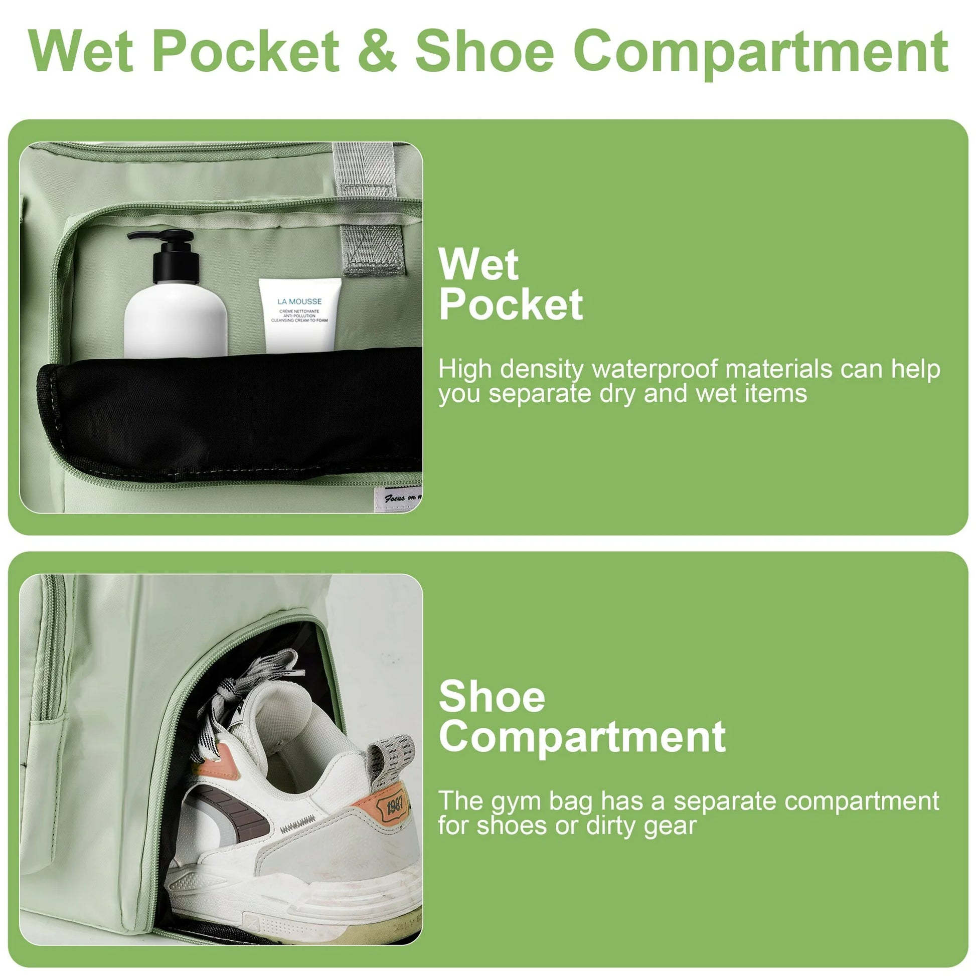 Onekawa Sports Duffel Bag 35L for Men & Women -Travel Duffel Bag , Waterproof Gym Bag with Toiletry Bag, Foldable Travel Backpack for Camping, Yoga, Weekend Trips - Green