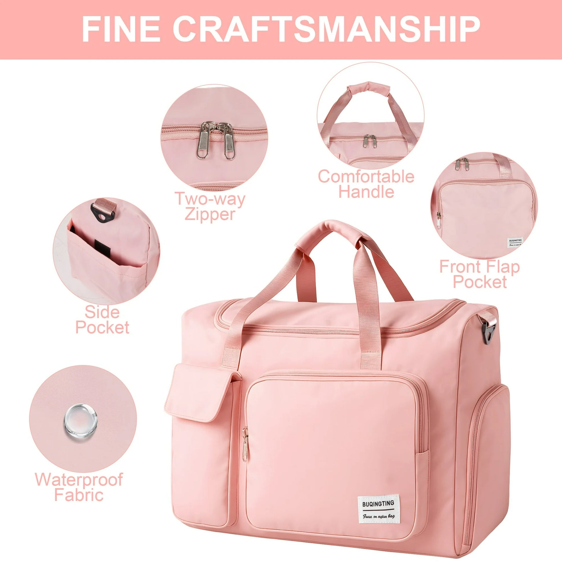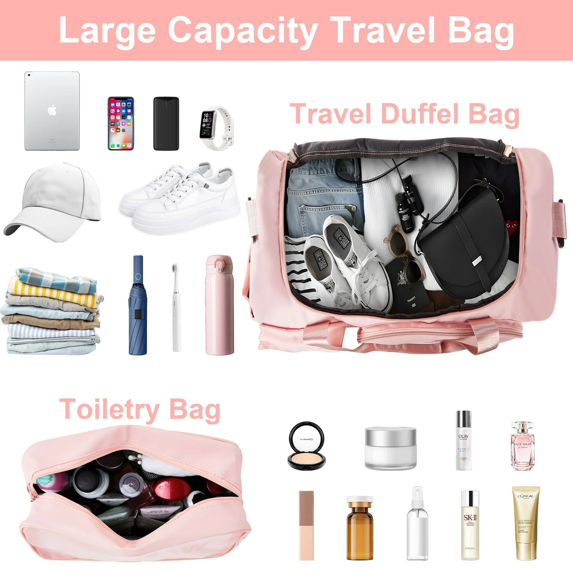 Onekawa Sports Duffel Bag 35L for Men & Women -Travel Duffel Bag , Waterproof Gym Bag with Toiletry Bag, Foldable Travel Backpack for Camping, Yoga, Weekend Trips - Pink