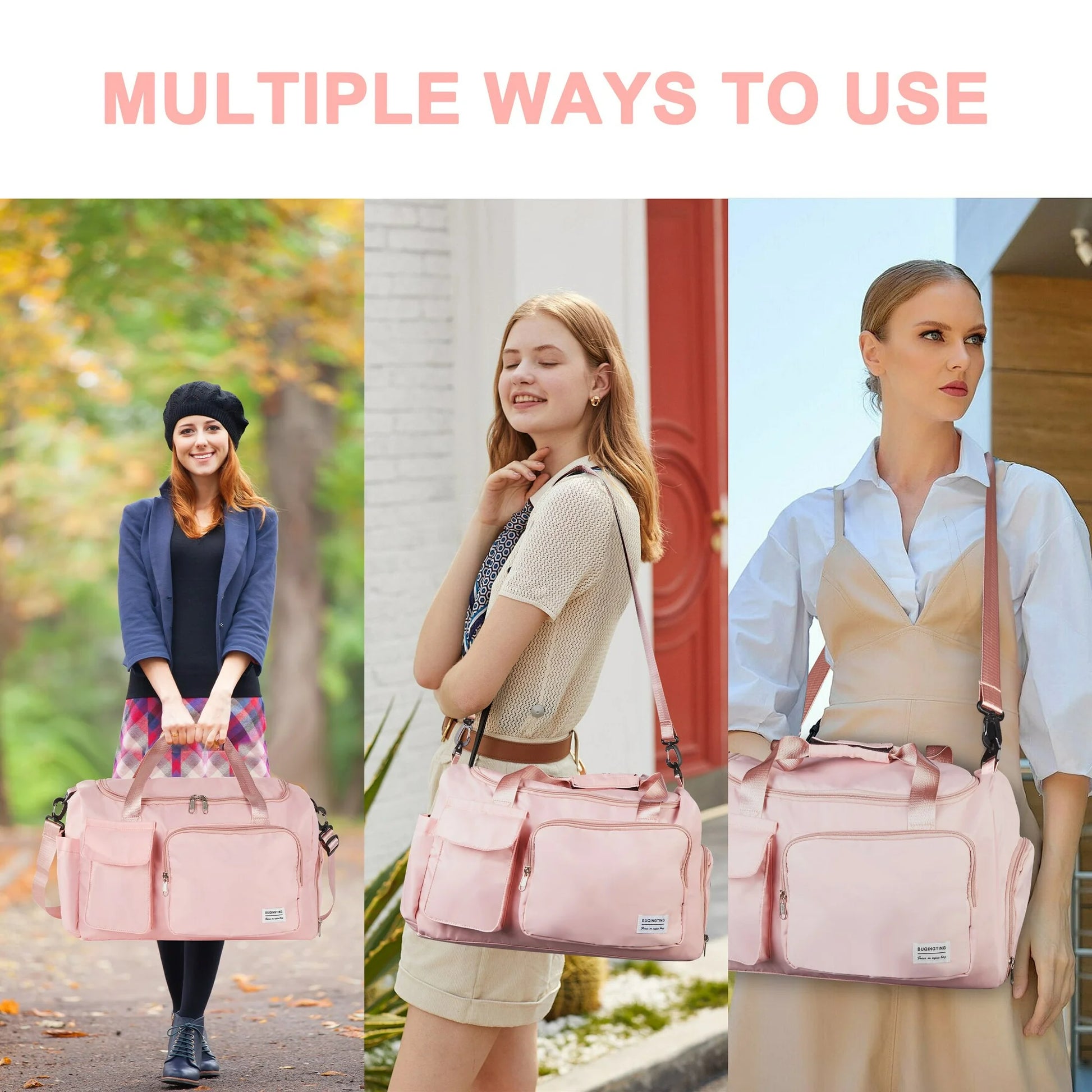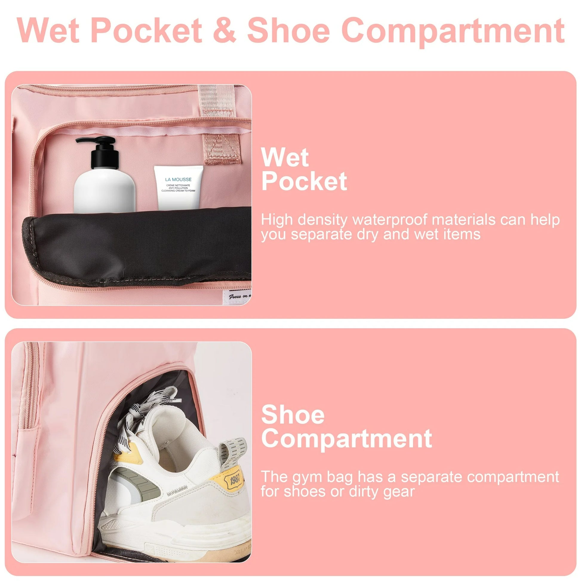 Equipped with a independent shoe compartment cleverly keeps your footwear separate, preventing any dirt or odors from contaminating your clothes.